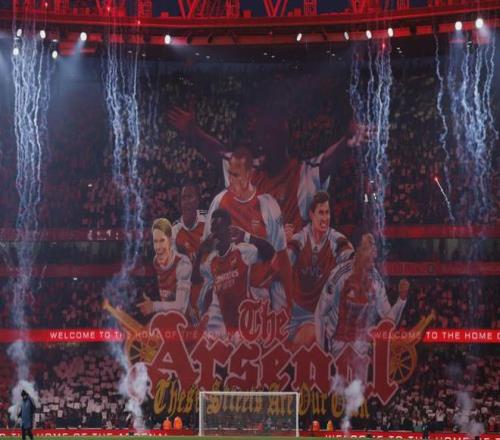 很帅的横幅!阿森纳主场说实话一直缺少一些这样的组织(好像整个英超都不太整活这些),但偶尔来一次还真是很有气氛!